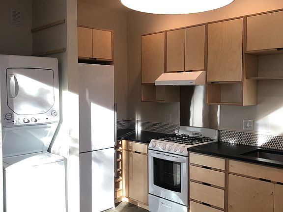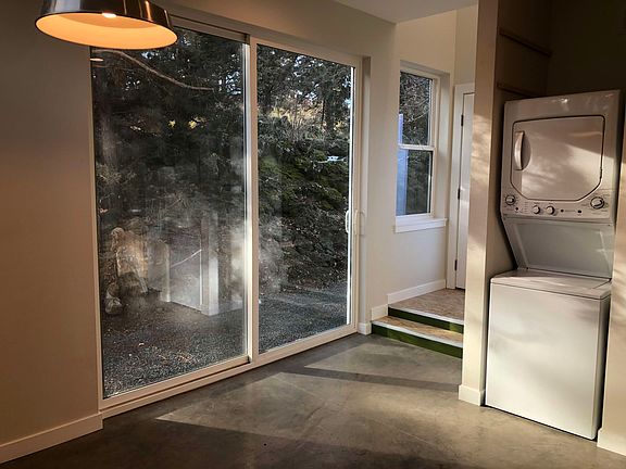 Mid-town, beautiful 1 bedroom, 1 bath, 2 story studio apartment with views of Pilot Butte and Juniper Park. You cannot beat this location with a rare combination of privacy and immediate access to one of the nicest parks in Bend. The studio is stand-alone, brand new, modern, and unique. It's a one of a kind living space for someone who values quiet and access to open spaces. The studio is walking distance to gyms, Juniper pool, restaurants, coffee shops, and more. The central location means that it's also a very easy drive to almost anywhere in Bend. First floor kitchen includes all new appliances: gas stove, modern refrigerator and D/W, and GE stacked laundry center. Concrete floors on first floor are heated with radiant coils. All hot water comes from an on-demand unit which means never having a cold shower. 8' x 8' sliding glass door in dining/kitchen area opens onto yard/park. Deer can often be found bedding down just feet away. Second floor has wood floors and Cadet heaters for extra heat in bedroom and bath. Bath has nicely tiled shower/tub combo. Second floor feels like you are living in the trees. The view of Pilot Butte fire works couldn't be better. Parking is either on the street or off street in the alley (very private). There is a private 5x8 attached storage space. No smoking, no pets. Rent includes water, sewer, internet, and garbage. All other utilities are the responsibility of the tenant. 2 person maximum occupancy. First months rent plus security deposit due at lease signing. One year lease. A background and credit check are required. If you are interested please respond with a short message telling me who you are, who would be living in the space, and anything else that seems pertinent. Feel free to include any questions you might have. I will reply to all messages as promptly as possible.