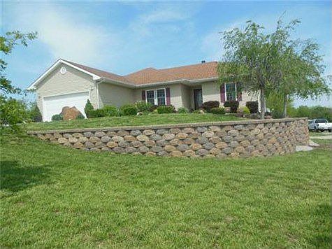 Very nice true ranch with open floor plan and split bedrooms on acreage with stocked pond. The 12+ acre lot has lots of woods and pasture area for horses. 24x32 out building with concrete floor, plumbed and electric. Formal dining room and breakfast room, master suite with walk-in closet, Jacuzzi tub, tiled shower, double vanity and skylights in the bath rooms. Beautiful fireplace in the living room, 9 foot ceilings, walk-in pantry, French doors to two tiered deck, and patio. Walk-out basement is finished with office/den, bar area, 32x28 family room, and 19x20 storage room.
