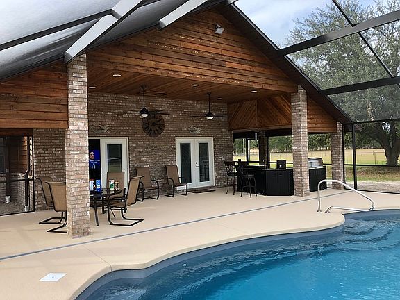 GORGEOUS MINI FARM! CUSTOM BUILT 3932 sq.ft.home on 5+ acres. This 3BR/2.5Ba home has an office, a one of a kind fireplace, large Florida room. Huge covered patio with in ground pool all within a screen room. There is a 36’ x 75’ work shop with an auto lift, a 24’ x 50’ RV carport, a 28’ x 36’ detached garage, and a screened in 12’ x 18’ bbq room on the end of the detached garage.