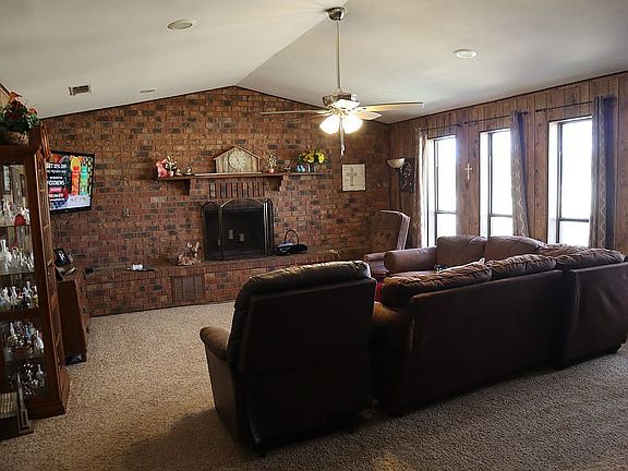 Fantastic farm/ranch property just 4 miles west of Olney, TX. This ranch home offers country views and plenty of room, but it's still a very quick drive to Olney's schools, hospital, groceries, and eating. This is a superb location for the best of country living and small town charm. Home has a spacious living area with vaulted ceiling, lots of natural light, and a fireplace with an expansive hearth, and four bedrooms, each accessing one of two updated bathrooms. Eat-in kitchen with cabinets to ceiling and spacious utility closet. Metal roof and large attached carport. Property includes cultivated land, barn/storage, cattle pens, and fencing/gates in place. Must see!