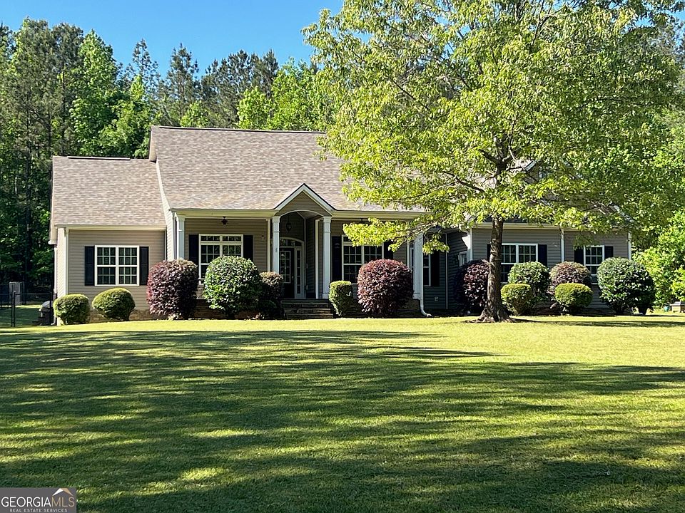Welcome Home to this beautiful property in sought after Pike County. This home features a spacious front yard tucked in behind a canopy of trees that offers you peace and privacy. Enter through a nice foyer and to your left you'll notice an office/formal living room, and to your right is a vast dining room. Featuring 10 foot ceilings throughout the home, the dining room boasts a trey ceiling and leads directly into a gorgeous kitchen that features lots of counter & cabinet space, stainless steel appliances and a prep island. The kitchen area also contains enough space for a breakfast table. The spacious family room features a gas log fireplace, vaulted ceiling, and built in surround sound that extends out to the outside deck. The large primary suite features a double trey ceiling, his & hers walk in closets, and bath with double vanity, separate shower and soaking tub. Two additional bedrooms, each with walk in closets and their own baths, complete the main level. Upstairs you'll find a gigantic bonus room that could be a bedroom, theater room, play room office or extra storage, it's all according to your needs. Off the partially covered back deck you'll find a large fenced level back yard that's grassed and open for any ideas you have. There is also a small stream on the property.Call today before this one is gone!!