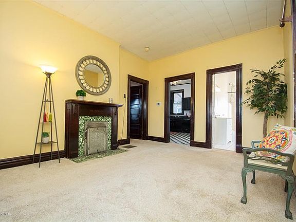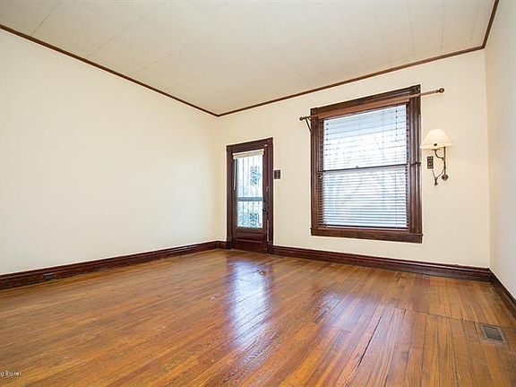 Open Sun., Mar. 31st from 2-5 pm. Charming Old Louisville home close to beautiful Central Park. Recent updates include a newer roof and HVAC system plus new appliances. Welcoming front porch opens to spacious room with versatile use--living room or bedroom with original hardwood floors, moulding and high ceilings. This leads to what was is currently used as the living room with gorgeous tile decorative fireplace. Adjoining bedroom also has decorative fireplace. Spacious eat-in kitchen has brand new stove and refrigerator, newer dishwasher and large pantry closet. Outside is a tranquil patio area featuring pond with fountain and sitting area which become lovelier when plantings bloom. Seller is offering a 1-year HSA Home Warranty.