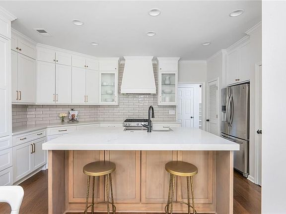 Welcome Home! Tucked within the sought-after Park Creek Swim/Tennis Community. Inside a soaring two-story foyer introduces recently replaced hardwood floors, crown molding and wainscoting details and a formal dining room. The recently renovated designer kitchen offers a large center island with custom natural wood cabinetry and gleaming quartz countertops, white perimeter custom cabinetry to the ceiling, a gas range, and subway tile backsplash. The living room features a cozy wood-burning fireplace with a brick and shiplap surround and large rustic wood mantel, flanked by custom shelving, built-ins and lighting. Charming keeping room with gas-burning fireplace with white brick surround and rustic wood mantel makes a natural gathering space. The spacious primary suite is located on the main floor. En-suite bathroom features double vanities with stone countertops, frameless glass travertine tile shower, soothing soaking tub and updated light fixtures. The upper level of the home features recently replaced designer carpet, three large bedrooms, two full bathrooms with stone countertops and new lighting, and a bonus room perfect for a home office or play area. All closets have custom organizational systems. French doors from the kitchen lead to a large paver patio with outdoor lighting, professional landscaping, fenced backyard, beautiful stacked stone retaining wall and firepit area perfect for cool nights. The exterior of the home is very low maintenance with brick front and hardiplank siding. A truly move-in ready home as HVAC systems, roof, and water heater have all been recently replaced. Conveniently located in award award-winning school district, close to GA-400, Avalon and downtown Alpharetta.
