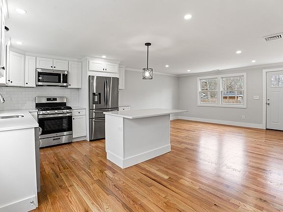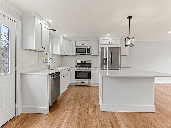 Beautifully and completely remodeled charming home boasts an array of modern upgrades. The first thing you notice as you drive in is the cobblestone-trimmed landscaping with fresh sod. The new siding and roof provide long-lasting durability and protection. Step inside to see all-new energy-efficient windows that bathe the home in natural light and keep utility bills low. The heart of this home is the stunning, brand-new kitchen, featuring sleek quartz countertops, a suite of new appliances, and all-new cabinets. Open floor plan with recessed lights. The bathrooms are completely brand new with modern fixtures, new floors, tiling, and all-new plumbing. The primary en-suite bedroom has a walk-in shower. Bedrooms have new hardwood floors, and freshly painted walls create a warm and inviting atmosphere. You'll enjoy the peace of mind that comes with the newly-installed HVAC system and hot water heater. Generously sized & fenced backyard for outdoor activities, gardening, or relaxing under