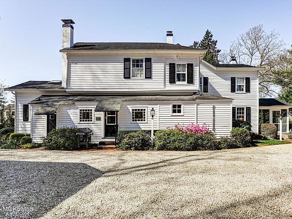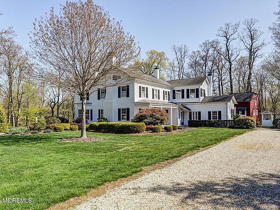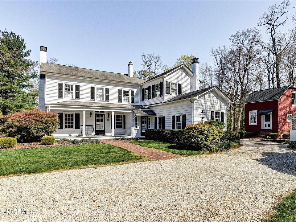 MAGNIFICENT CENTER HALL FARMHOUSE!!! Absolutely Stunning! A true New England classic in Little Silver. Tucked away on 3.6 acres in a delightful sylvan setting. Downstairs are living room w fire place, family room w fire place, formal dining room, cozy den and country kitchen with wood stove and beamed ceiling. On the second floor you'll discover 3 good sized bedrooms, homework room and two full baths.Relax on a choice of open or screened porches. Lovely in- ground pool and patio area that is completely isolated for great entertaining. Gorgeous landscaping and plantings. Barn (garage), and Millhouse