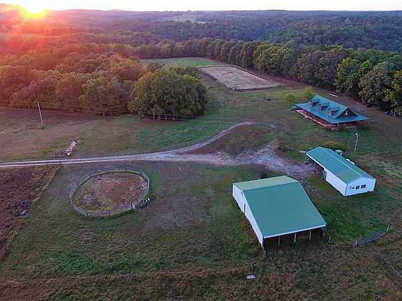 Horse lover's dream! This property features a 2400 sq ft modern, country home, an air-conditioned workshop with utilities, an indoor riding arena, tack room, 11 indoor stalls, a breeding stall, a wash stall, 2 outdoor stalls, round pen, outdoor riding arena with lights, watered pastures, and 2 ponds. There is 27 acres of pasture and the rest is hardwoods. The current owner has 5 horses and never has to feed them hay as the pasture is productive enough to keep them satisfied all year. The Mark Twain National Forest is located within minutes of this ranch so take your horses and ride the miles of trails! There is also really good hunting at this property.