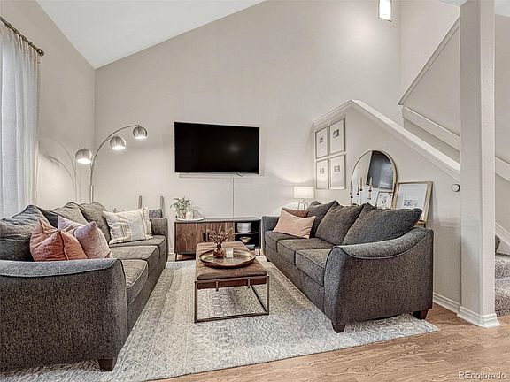Beautifully updated, 3-level townhome with attached 2-car garage in Lakewood’s Hills at Oak Run community. Perfectly situated 15 minutes from downtown Denver, Highlands and Platte Park, this 3br/3.5ba unit offers a location near downtown nightlife and culture without the big city price tag. Great as a lock and leave or perfect for a first-time buyer, this 1870sq ft unit feels much larger than its footprint. The main floor’s classic layout of kitchen, dining, living and powder room creates an appealing gathering space. Granite counters and stainless steel in the kitchen are stylish, and the hardwood flooring offers a natural warmth. The dishwasher, side-by-side fridge, range and overhead microwave along with plenty of wood cabinets provide space for the chef and provisions. Upstairs, a spacious master suite with just the right amount of natural light includes vaulted ceilings, and an office or sitting area with a cozy gas fireplace. An attached 5-piece bathroom has a soaking tub, shower, dual sink vanity with granite counters and toilet creating an upstairs oasis. The walk-in closet has hanging organizers to maximize space. A second bedroom looks out to lush, mature trees and green space at the front of the unit, and there’s a convenient full bathroom in the hall. The basement level adds a third bedroom, currently showing as a family room and includes a small bar with a sink. A gorgeous bathroom with a slate shower has stone accents, and the laundry room and under-stair storage add to the flexibility of this well-designed unit. A new furnace/AC was added in 2023 offering peace-of-mind and minimizing unexpected costs. Hills at Oak Run has roughly 100 units and a smartly run, affordable HOA with good reserves that prioritizes maintaining home investments through capital improvements. Ray Ross Park is nearby with trails, playgrounds, and fields, and Belmar is minutes away providing entertainment, dining and shopping options.