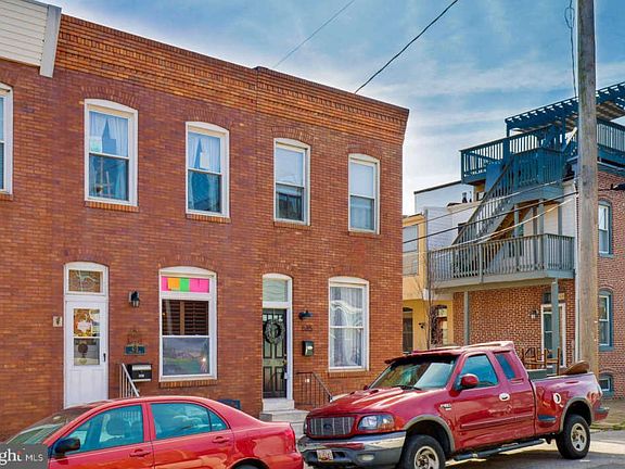 Beautifully updated end-unit home with private parking pad in wonderful Brewer's Hill!! Large windows allow amazing natural light to filter into the spacious, open main level that offers gleaming hardwood floors. Large kitchen with updated appliances and breakfast bar provides access to easy to pull-in parking pad! Upper level features skylights, generously sized bedrooms including a master suite with attached bath with tub and separate shower and additional half bath. Large freshly painted deck is perfect for relaxing or entertaining with its sweeping city/iconic views! Full unfinished waterproofed basement provides plenty of storage space or potential for additional rooms with separate entrance. Convenient to shopping, dining, bars, restaurants, commuter routes and so much more! A MUST SEE!!