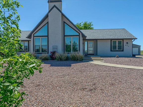 Don't miss out on this amazing opportunity to own your very own horse property while enjoying the convenience of paved road access to shopping, schools, walking paths, and Lake Pueblo! As you approach this charming 1.5-story home, its quaint appearance will capture your heart. The front yard is fully landscaped with xeriscape, ensuring low maintenance. With plenty of off-street parking available, the home sits on over 2.5 acres of land. Step inside to be greeted by spacious vaulted ceilings in the living room, creating an inviting atmosphere around the fireplace centerpiece. The large eat-in kitchen offers ample countertop and cabinet space, featuring a center island and a built-in oven. Outside, revel in the park-like yard with a generous covered patio, providing a serene escape from the hustle and bustle. The primary suite boasts a sizable walk-in closet and an attached five-piece bath, with a second walk-out to a private side yard. The split bedroom layout places bedrooms 2 and 3 on the opposite side of the home, accompanied by a full bathroom. Upstairs, a well-sized loft serves as an ideal office space, offering a walkout to the deck overlooking the west-facing yard. The basement awaits your personal touch, with some framing already completed. It has potential to accommodate two additional bedrooms, a recreation room, and a bathroom for added space. Additionally, a 25x30-foot outbuilding with a cement floor provides perfect storage for your toys.