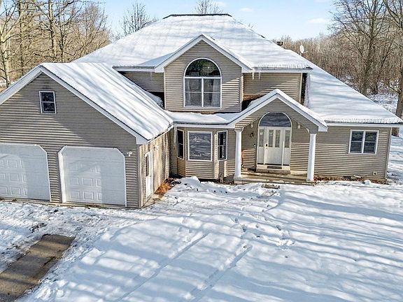 Set on over 19 private acres in Mount Pleasant, this 4-bedroom, 2 1/2 bath home offers approximately 2,500 square feet of well-maintained living space built in 2001, combining privacy, functionality, and long-term potential. The main living area features vaulted ceilings, strong natural light, and a gas fireplace, with a kitchen that includes an island, solid cabinetry, stainless steel appliances, and a layout that connects easily to the dining and living spaces for everyday use and entertaining. The main-level primary suite adds convenience, while additional bedrooms provide flexibility for guests, office space, or hobbies. Bathrooms are clean and functional, allowing for immediate occupancy with opportunities for future updates. A long private drive leads to a quiet setting surrounded by mature woods and open land, complemented by a 2-car attached garage and a large detached pole building offering substantial storage and adaptability for a variety of uses. This property delivers space, privacy, and a solid foundation for buyers seeking acreage within reasonable proximity to Mount Pleasant amenities.