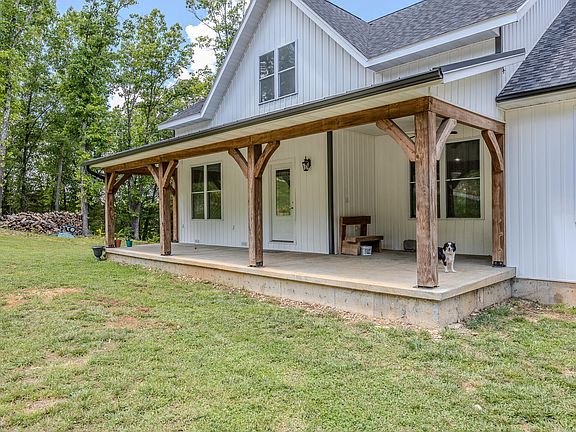 Beautiful large family home sitting on 69+ acres of wooded ground with access to more than 2,000 of Osage fork river access at your back door! This one of a kind property has a long private drive back to a farmhouse style home built in 2021 with river access just behind the home. The home features real hardwood floors throughout the main level with a completely open concept and large vaulted ceilings. This custom home has so many great features with the large kitchen and island for seating, butcher block counters, pantry area and under cabinet lighting. There is space for a dining room table along with plenty of seating space in the living room and a wood burning fireplace. The master suite has tray ceilings, large windows for natural light and a huge walk in closet with two doors. The on suite bath has a custom tiled walk in shower with bench seating, double sinks and a soaking tub. Bedrooms two and three are also on the main level along with a full size bathroom. Downstairs there is an additional bedroom along with a second living space, kitchen and dining area and a large covered back patio. Outside living space is phenomenal with a large covered back deck overlooking the Osage fork river. This property is truly one of a kind and also offers an oversized garage with a single garage door, covered carport area and a small outbuilding. Come enjoy the warm summer days at the creek and wildlife that are abundant on the property.
