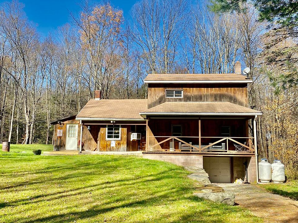 **SELLER SAID BRING OFFERS**PRICE IMPROVEMENT FOR IMMEDIATE SALE AND A 1 YR HOME WARRANTY INCLUDED** Rustic cabin with lots of potential!Septic pumped/inspected. Well water/passed.Seller had a home inspection done for buyer informational purposes. SELLER NOT ADDRESSING ANY REPAIRSHome was purchased by seller in 2014 when it was gutted and down to studs. Concrete footings and foundation were done along with electrical, plumbing & heating. Rough cut wood siding is placed over old siding and insulation and was done for the esthetic look. A good power wash and stain will make me look wonderful!While the second floor needs love and attention and a roof will be needed in the near future its a great sturdy home ready to be loved! Beautiful property setting just under 5 acres with long tree lined driveway, large front porch!Just a quintessential country cabin style homeFar from perfect but will be perfect for someone! Beds Description: 2+BED 2nd, Beds Description: 1Bed1st, Baths: 1 Bath Level 1, Baths: BT Other, Eating Area: Modern KT