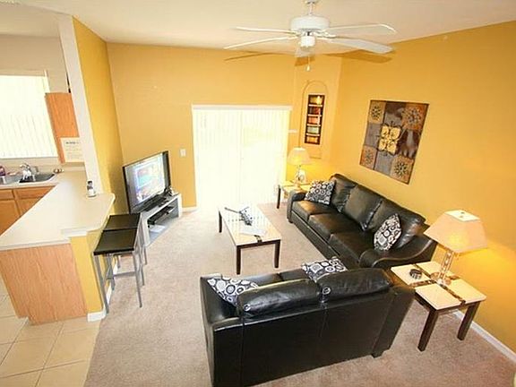 Beautiful 3/3, well furnished, clean and ready to earn rental income unit in Regal Palms. No need to spend upgrade money to bring cheaper units up to high standards for renters. Returning guests' rental income is maximized in Regal Palms by having a great location. Terra Lago is a preferred location for guests because it is close to all the amenities. Because of the large rear yard area, this unit has a "back home" element to the rear patio and yard. Regal Palms is a preferred community for vacation rentals because it has features they seek. The clubhouse centers the community, and has a pool, lazy river, full service spa, games arcade, Tiki bar, sundries shop, indoor sauna and exercise room, full service restaurant and bar. Guest Services is open 24 hour and located in the main clubhouse. From Regal Palms, visitors can access all the Orlando attractions off of I-4, and if desired have a short drive to East or West coast Florida resort beaches. There are three full baths for guest convenience. Decorator paint, flat screen TV's, upgraded furnishings, washer and dryer, and upgraded window treatments are just some of the additional benefits to owning this unit. Compare the value benefits of ready to rent before buying inferior quality units! Brand new air conditioning unit!