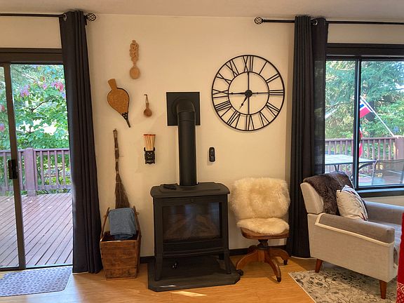I am looking for a quiet responsible tenant for my fully furnished home in the wooded area of white salmon. While the area is quiet and serene, It's only 1/2 mile from downtown. Features include: -Fully furnished home as seen in photos. -Spacious open concept great room -Fully equipped kitchen -Two dining areas -Large bedroom furnished with a queen bed and a dresser. Also has an open area for you to furnish with a desk, yoga mat, or reading chair or whatever you like. -private bath -gas fireplace -large deck. -Washer and dryer -garage -hardwood floors Perfect for traveling healthcare worker, skier, or person looking to relocate. A pet maybe considered 6 month lease minimum. Available Oct 15 6 month minimum No smoking of any kind 675 credit score Clean rental history with no prior evictions. Pet considered