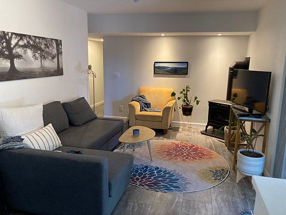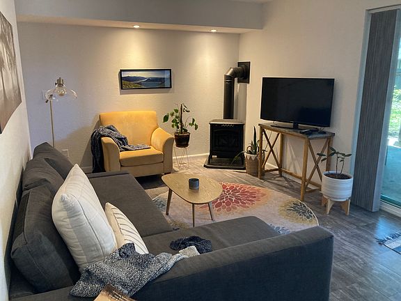 Nestled in a quiet wooded area just 1/2 mile from town. This charming walkout basement features; one bedroom plus an office gas fireplace Shared laundry Off street parking provided Large covered patio and yard. Quiet, well behaved dogs are allowed. Seeking quiet and responsible tenant for my walkout basement apartment. No smoking of any kind 9 month lease Parking provided Laundry facilities onsite Rent 1475/month Utility and internet $200/mo Credit score 685 or higher No evictions Past landlord references Will consider a quiet well behaved dog Furnishing are not provided