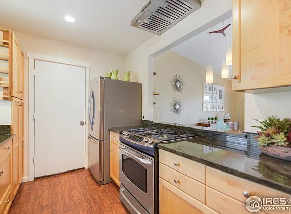 In the heart of Louisville this gorgeously updated home is south facing and filled with light. Kitchen features granite countertops and newer stainless appliances. Master bedroom has beautiful hickory flooring and large built-in wardrobes. Lower level can be family room or master suite with radiant floor heating and spacious bathroom. Large two car garage and yard that backs to open space with bike path to Rec Center or Downtown Louisville. Short distance to many parks and Fireside Elementary.