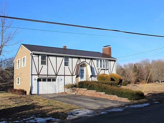 FINANCING FELL THROUGH - PROPERTY APPRAISED for 329K! Well cared for, one-owner raised ranch that overlooks 83 acres of rolling Farmland owned by the Town, formerly known as Baker Farm. The exterior boast both stucco and wood shingles - both premium materials, 4 parking spaces, mature shrubbery, metal roofing, and a back deck for your enjoyment. The kitchen is equipped with real wood cabinetry and is open to the formal dining area. Cozy up to the fire with the brick fireplace upstairs or the wood burning stove in the partially finished basement. The large bow window in the living room lets in beautiful natural light and has picturesque views of the farmland. Oak hardwoods throughout the first floor. The over-sized garage would make a great place for workshop or additional storage. Partially finished basement just needs flooring to be complete! Conveniently located, just minutes to 195 with the allure of a quaint country setting. Seller to install brand new septic prior to close.
