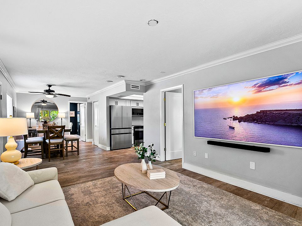 Turn-key, Fully Furnished Luxury Condo with amenities and inclusions. Rent INCLUDES: 1-Gig internet + cable, water/sewer/trash, landscaping & pest, and access to clubhouse and private cluster pools. Ground-floor condo in Pebble Springs parking at your door, steps to the pool, 10 min to Anna Maria Island & IMG Academy. Fresh designer remodel with PGT top-of-the-line impact windows and sliding glass doors, tile floors, 85" Samsung Frame TV in living room + 65" Frame in office/flex, Bespoke kitchen, seamless quartz, 33" workstation sink + touchless faucet, in-unit washer and dryer, and a covered/screened lanai with storage. Small pets considered (HOA). Available NOW; 12+ month lease preferred; HOA approval required; no smoking. Tours by message. Unfurnished possible with notice. 12-month lease preferred. No smoking allowed inside the unit. Water, sewer, trash, pest control, cable, and high-speed wifi are included in rent. Tenant responsible for electricity. Tenant responsible for basic upkeep (e.g., replacing air filters monthly, reporting issues promptly). Unit comes fully furnished and professionally cleaned prior to move-in. Parking: 1 assigned space directly in front of unit + guest parking nearby.