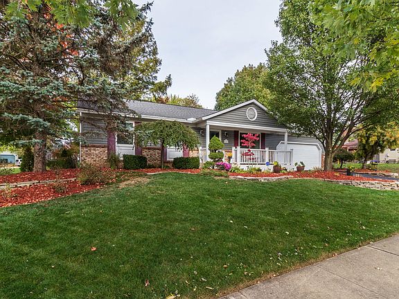 Welcome to 6350 Barnside Dr! Enjoy the beautifully landscaped yard w/ perennials for all seasons while sitting on your front porch just constructed in 2015 & new asphalt drive freshly sealed. Through the front door you'll find an open concept layout w/ loads of charm & detail w/ newly added recessed lights, solid surface floors, custom coffered ceiling, & woodburning fireplace (just cleaned in last year). 3 beds & 2 full baths are located down hall (inc. owners' ensuite) both updated w/i the last 2 years. Access the private rear yard through the sliding door off kitchen w/ gazebo & fenced yard (shed included!). Tons of storage in basement as well as a room that could be used as an office or a 4th bed. New windows 2014, new humidifier on furnace 2018, new gutters 2014, roof & siding 2007.