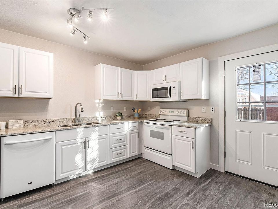 Highest and best offers due 2/21 @5pm with a response deadline time of 10am 2/22. Cheap townhome, over 1000 square feet, and there is NO HOA! This end unit townhome was just updated with new slab granite kitchen counters, new cabinets, new flooring throughout including carpet and vinyl, new paint throughout, new lighting, new rear door, and more! Wood burning fireplace in living room. Stacked washer and dryer included in sale. The back and side of the property is fully fenced and has two storage sheds in rear. Off street parking in front of unit. Blocks away from Dick’s Sporting Goods Park, Paradice Island Pool, and Pioneer Park. Easy access to I-70 and 270. Quick close and possession available. Showings start Saturday February 18th at 9am.