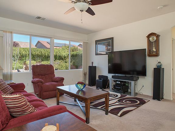 Fabulous landscaping with flagstone, flowering plants and trees. Immaculate home just painted inside and out. Lovely views from front and back patios. Four bay windows let in lots of natural light. Dine in kitchen with an island, pantry and breakfast bar. Large master with walk-in-closet and full bath. Spacious den that could be a third bedroom. Extra storage room. Fabulous Clubhouse with pool, spa, billiards, work out room, kitchen, card room and outdoor grill too. Join the fun lifestyle. Do you know the way to Verde Santa Fe? The way home!