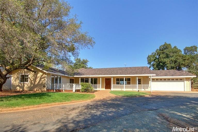 Newly painted w/vinyl siding, 3bd/3ba home on hilltop setting on 2.5 acres. Covered patio in the rear with fabulous views & railed front deck. Wood burning stove in great room w/built-in entertainment cntr. New interior paint & carpet, stainless steel appliances w/tile counter & flooring. Huge laundry rm w/cabinets. Hardwood flooring in entry & dining room. Fireplace in master bdrm. Detached 3 car garage converted to small animal barn, fenced, 2 out buildings. Detached office/guest house w/bath.