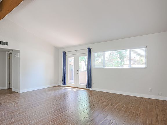Available 5-1-25. Professionally cleaned and move in ready! Remodeled 2 bedroom, 2 bath townhome w/ 2 car garage is located in a highly sought-after community, close proximity to dining, shopping, and entertainment. With new wood-like tile floor and a bright, open floor plan featuring vaulted ceilings, this home offers a great blend of comfort and style. The kitchen has white cabinetry, granite countertops, SS appliances, and French Doors to the back patio. Newer full size washer & dryer, no interior steps. The primary bedroom features a private exit onto the patio and a walk-in closet. The community has a pool, hot tub, dog park, and tennis courts. Lots of mature trees for shade and a grassy areas with walking paths. Easy access to the 101 & Old Town Scottsdale. Dog with landlord approval, no cats. Income to be 2.5x rent.