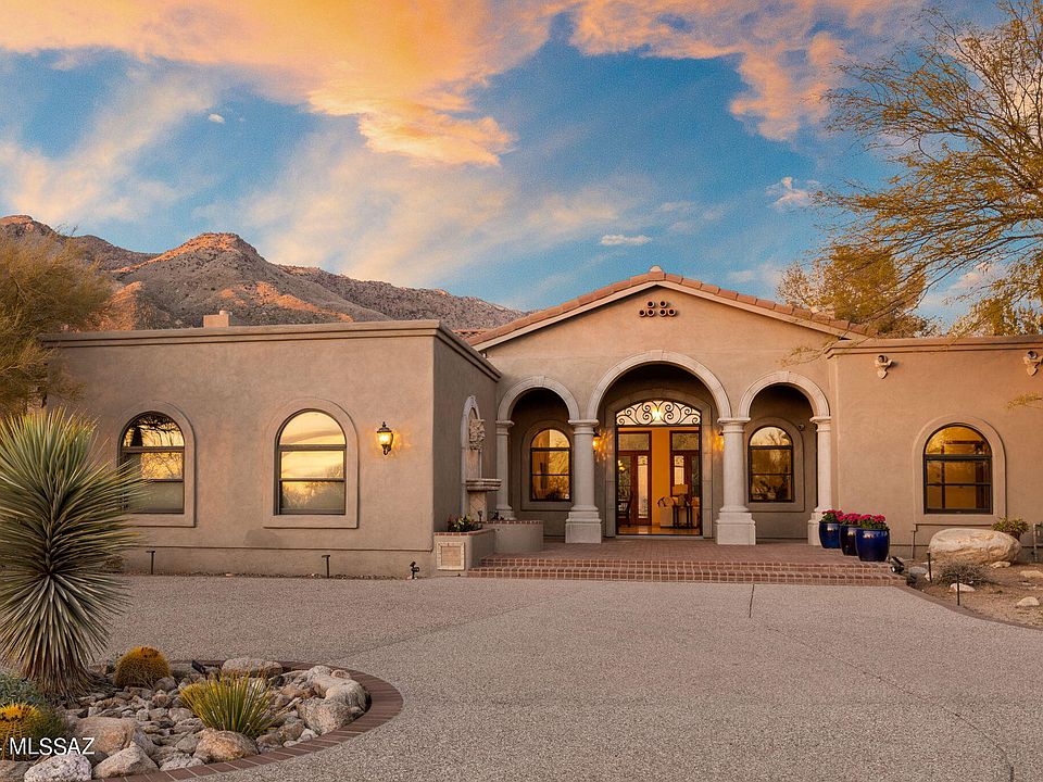 Foothills Finest! Privately nestled on a charming neighborhood drive in prestigious Skyline Bel Air community, this one of a kind home shines at every turn! Built with pride and intention in 2009, this luxurious estate welcomes with circular driveway, grand entryway, and soaring ceilings! As you walk in, there is a sense of grandeur as the natural light sparkles showcasing breathtaking, unobstructed mountain views! Huge picture windows, clerestory windows, and doors with windows make the space light, bright, open and airy! The open concept chefs kitchen is ready to produce your next epicurean delights for family and friends! It includes luxe appliances, granite, and custom cabinetry galore. This home is quality top to bottom and you can feel it! (continued) The primary suite is a true retreat with views for days, cozy fireplace, his and hers closets, spa like bathroom with robust, bespoke appointments. Out back, the sparkling pool blends seamlessly with the courtyard, built in BBQ, and firepit! The guest house frames the backyard perfectly creating a comfortable space directing your gaze towards the mountain view perfection! Don't miss the fresh paint inside and out, the built-in bar, the separate access to guest house, and so much more! Special home here!