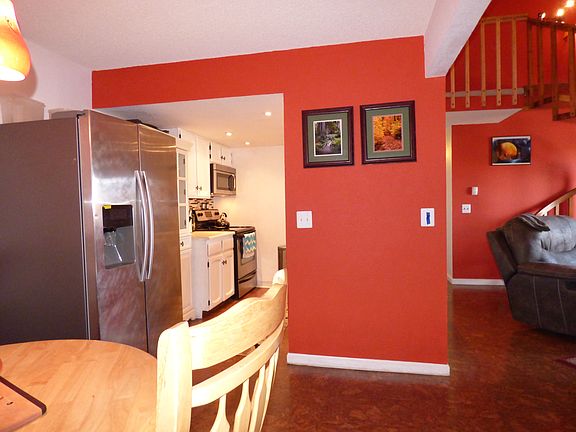 This lovely condo features a soaring vaulted ceiling, dramatic fireplace and spiral staircase leading to the large loft area that makes a great office. The kitchen features newer stainless appliances and is open to the living room and dining room. Relax with a cup of coffee on the large balcony. Enjoy the comfort of a warm fire in the fireplace on cold winter nights. The master suite has a full bath and walk-in closet. The newer washer and dryer are conveniently located right next to the bedrooms. The furnace, central air and hot water heater are all less than five years old. The television in the living room, outdoor bistro table and chairs, kitchen china cabinet and two cabinets in the loft are all negotiable. Great location near several parks, shopping, and not too far from I-70 for a quick hiking, camping or skiing trip to the mountains.