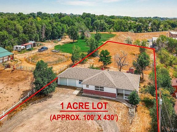 Million Dollar Views!!! 1 Full acre right in the middle of Arvada !! Move in ready. Update as you wish or scrape and build your dream home. Unobstructed and Panoramic Front Range views. Some of the most Gorgeous Sunset views from your front porch as well as your dining and living room. The private and secluded backyard also has City Views! Rear lot line is NOT at fence to the East. Rear lot line is at crest of hill prior to neighboring garages to the East. Elevation and floor plans available for possible scrape and new build!