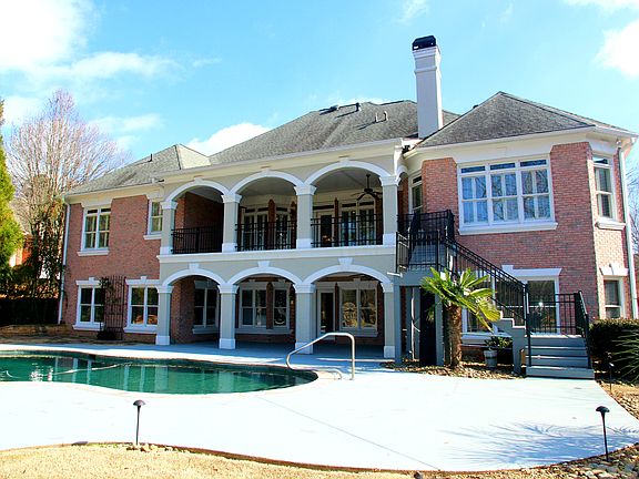 $50k Price Reduction! Stunning golf paradise on Polo's 17th fairway! Elegant & grand ranch home on full finished terrace level with outdoor oasis. Designer finishes thruout- Gourmet kitchen w/Sub Zero and SS appliances, plantation shutters, wood floors, intercom, seamless shower, central vac, heavy trim, 12 FT ceilings, covered veranda overlooks salt water pool with waterfall, outdoor stacked stone fireplace, flat fenced yard. Finished terrace level boasts bedroom suite with private full bath, half bath, FP, full bar, 2 rec rms, exercise rm, wine rm, storage. Close to top schools, GA400, The Collection, Vickery Village Shops & Restaurants, hospital, private access to Greenway. This home is truly remarkable.