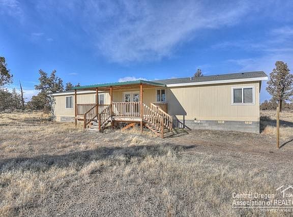 Nothing short of amazing! A high desert oasis on 19.9 fenced acres, bordered by BLM on two sides with private gated access. Has hundreds of manicured trees, and frost-free water/power at 5 strategic locations. The well-kept, bright manufactured home has a huge kitchen, laundry, family room, living room with fireplace - even a wet bar! Tons of storage, windows, vaulted ceilings, and new carpet throughout. Large cedar decks on each side. 24x48 pole barn, 12x16 solar shed, deluxe coop, 40' storage container.
