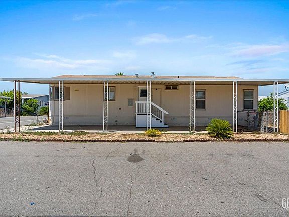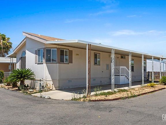 Welcome to El Adobe Estates in the southwest part of Bakersfield. This corner lot mobile home is a beautiful double wide boasting almost 1300 sqft. Lots of windows throughout gives you so much natural light. Newer flooring and fresh paint in the interior. Beautiful kitchen with a hutch and desk area with tons of cabinet space. There is a nice size office room along with spacious bedrooms that have new carpet. The master suite has a separate tub and shower along with double sinks. The laundry room is a large size with storage space as well. There's a nice porch area to sit and enjoy your coffee in the morning. This park is not age restricted and is close to shopping, schools, and the freeway! Make your appointment today!