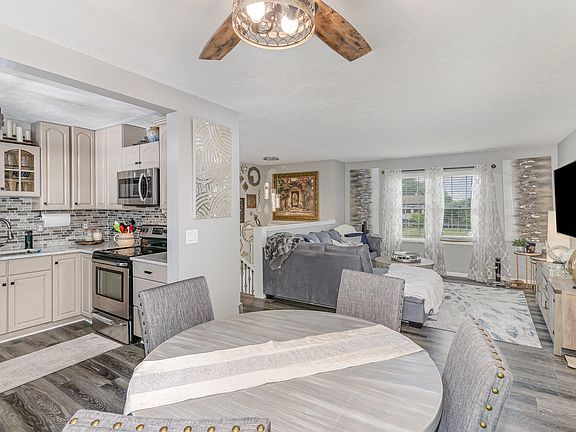 Brand New Roof! Decorated and upgraded throughout. Truly a stunning home from top to bottom. Gorgeous kitchen with newer stainless appliances. Upgraded LVP flooring. Both bathrooms are BEAUTIFUL. Finished lower level with wood burning fireplace and a 4th bedroom and a warm great room. Central vacuum and closet systems. Full laundry/mud/storage room coming from the garage. Nice rear deck overlooking your large rear yard with firepit area. Home backs up to a large vacant field. Extended garage. Extra parking in front for 2 cars, off street.