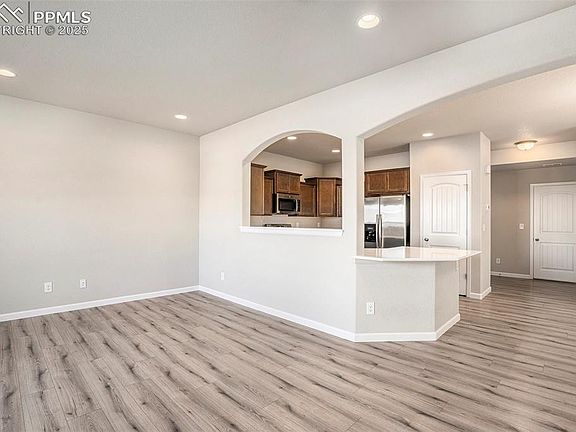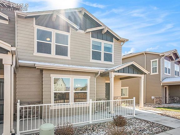 Discover your ideal retreat in this exquisite 3-bedroom, 3-bathroom townhome, built in 2022 and offering 1,966 sq. ft. of modern comfort. Tucked away in the coveted Lorson Ranch community, this home showcases upscale finishes and clever upgrades, with no steps to navigate from the attached 2-car garage or the charming front entry. The main level welcomes you with a bright, open design and soaring 9' ceilings that enhance its expansive vibe. The stunning kitchen shines with sleek quartz countertops and flows seamlessly into a warm family room, dining space, and a convenient powder room—perfect for gatherings or quiet evenings in. Upstairs, the primary suite beckons with a generous walk-in closet and a serene 4-piece ensuite bathroom designed for relaxation. Two additional roomy bedrooms, each featuring their own walk-in closets, provide plenty of flexibility for family, guests, or hobbies. Newly laid laminate vinyl plank flooring elevates the bathrooms and laundry room with a blend of elegance and resilience. Ideally located, this home is just 13 minutes from Peterson SFB, 20 minutes from Ft. Carson, and 28 minutes from Schriever SFB—offering effortless access to key destinations. Don’t let this pristine, move-in-ready treasure in a flourishing neighborhood slip away.