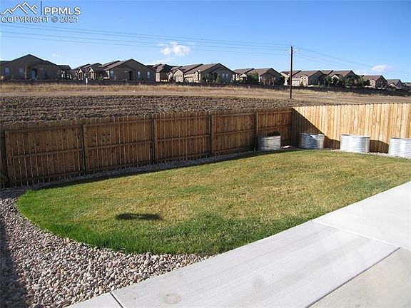 Newer home built in 2018 is ready now! From the covered front porch, an 8' front door invites you in to a tile entry and open-concept living area that is wired for surround sound ~ In the kitchen enjoy an island with breakfast bar, handsome stainless steel appliances and a pantry closet ~ Note the mechanical room with radon mitigation system ~ There are views of Pikes Peak from the upper level and a loft for family room, study area, playroom or ? ~ A laundry room is located in the hallway between the bedrooms and the clothes washer & dryer are included ~ You'll appreciate the well maintained yard with landscape irrigation system, fenced in the back and featuring an expanded patio, concrete sidewalk around to front yard and access to the community trail ~ The garage is drywalled and includes shelving & an automatic door opener ~ Utilities are provided by Colorado Springs Utilities ~ Fiber internet is available ~ The location is convenient to multiple military installations & other major employers, shopping, restaurants and entertainment opportunities!