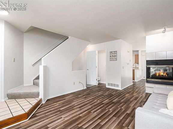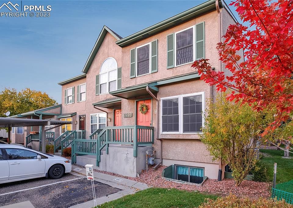 Welcome to your ideal townhome in D-20 Colorado Springs! This exceptional property features a host of desirable amenities, including a fabulous deck and covered patio, new PAINT, and new FLOORING throughout. As you step inside, you'll be greeted by a spacious living room and cozy dual sided fireplace on the main level providing a warm and inviting ambiance. The kitchen connects to a cheerful dining nook and has access to the covered patio with room for seating and a grill. Upstairs, find one bedroom, one full bathroom and the master bedroom. The expansive master bedroom boasts a unique walk-out design, leading to an upper-level deck. Savor the tranquility and beauty of the outdoors right from the comfort of your own bedroom! Moving to the basement, discover a space that is the perfect place to hangout with loved ones. Three levels in all, this home has room for everyone. Even more getting an extremely desirable location for this price –You don't want to miss this home! A/C and all triple pane windows are only five years old –Furnace and water heater too!