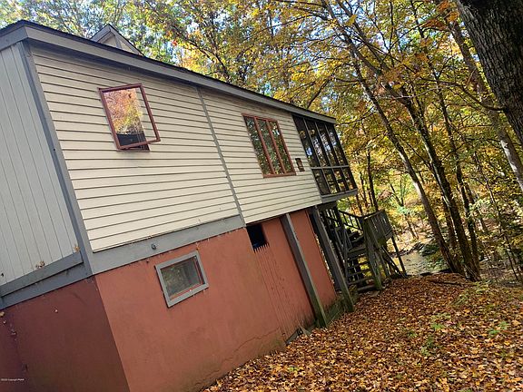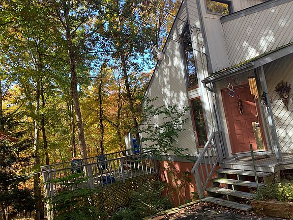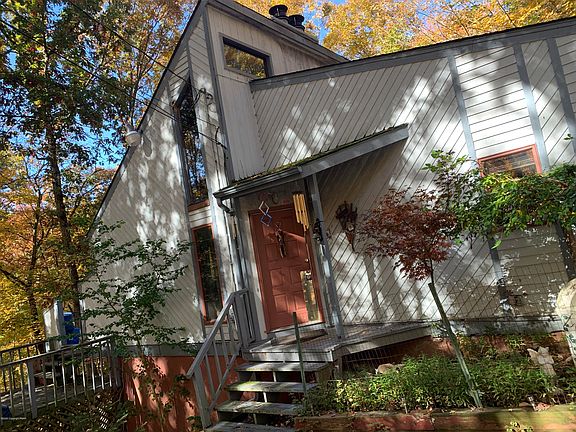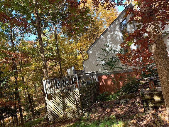 Stream Front - Contemporary... (3)Bedroom (3)Bath w/Master Bedroom (Main Floor) Suite w/Whirlpool Spa-Tub & Shower Enclosure. Large Living Area w/Wood-Burning Fireplace, Vaulted Tongue & Groove Ceiling. Lots of Windows Offer Vantage View of the Stream and Plenty of Natural Light.. Accessing Large Rear Multi-Level Deck w/Screen Porch... Kitchen w/Sunken Dining Area, Plenty of Storage Cabinetry. Full Finished Walk-out Basement (25x34) Multi-Rooms, w/ Coal Burning Free-Standing Stove... #3rd Full-Bath and Large Laundry Room and Dry-Storage Area.. Paved Driveway Offers Plenty of Parking.. Very Private, Walking Distance to Outdoor Pools/Tennis/Sports Courts/Fields, Picnic Pavilion and School Bus Areas.. Needs some TLC but Finished Product will be Outstanding.