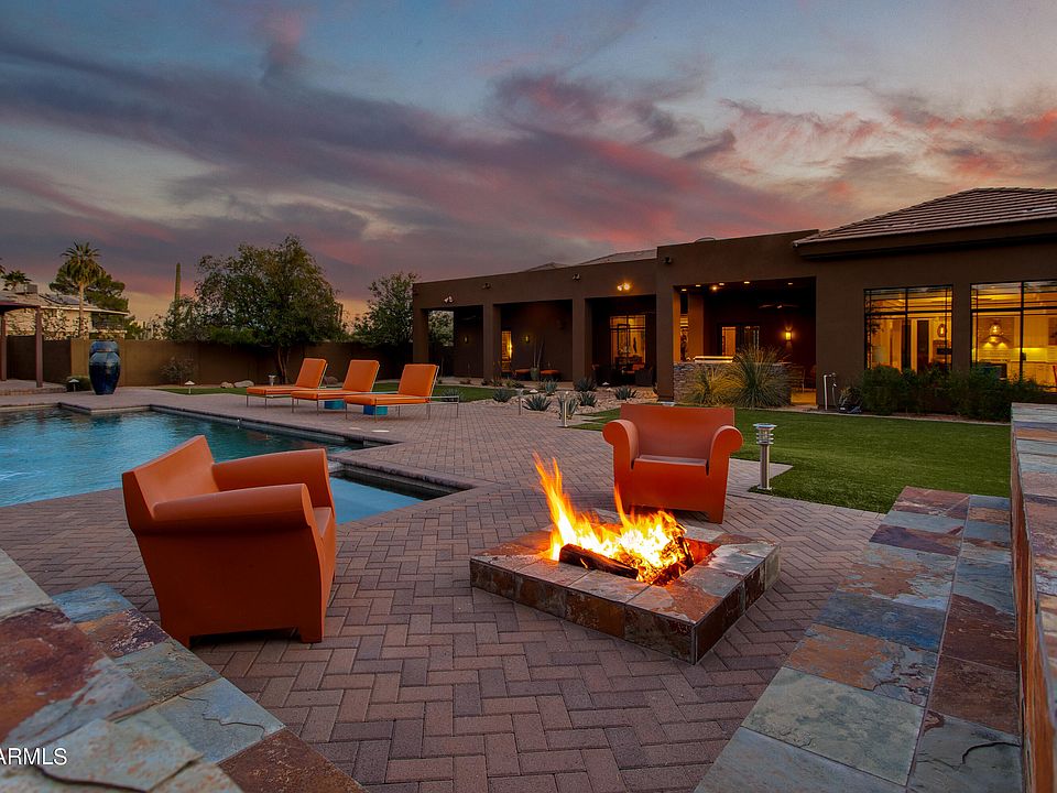 Introducing a luxurious oasis nestled in North Scottsdale. This residence boasts elegance & comfort across a sprawling 1.5-acre lot. Upon stepping through the expansive glass entry door, visitors are welcomed by 12 ft ceilings, adding to the sense of spaciousness & elegance in the home. The beautifully designed split floor plan offers privacy & convenience, with the master suite secluded for utmost relaxation. Each corner of this home is crafted with sophistication & attention to detail. Entertainers will delight in the gourmet kitchen featuring pristine white cabinets, marble countertops, & a large island perfect for gatherings. Step outside to an outdoor oasis complete with an expansive pool, pavers, turf, & an outdoor kitchen, creating the ultimate setting for outdoor hospitality. This home is adorned with custom cabinetry and has been freshly painted, offering a pristine canvas for personalization. Additional highlights include a 4-car garage, new HVAC system, and upgraded amenities throughout. Experience the epitome of luxury living in this Scottsdale sanctuary, where every detail has been thoughtfully curated for the discerning homeowner.