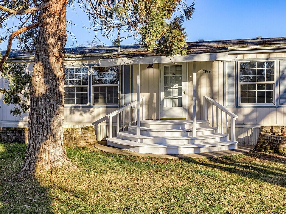 MOVE IN READY!!! This 3 beds and 2 bath manufactured home built in 1995 sits on .49 acres which provides plenty of space for garden, kids, toys and RV. RV space has sewer hookup available. Mature trees, cover front porch and large covered deck w/ramp in back offer plenty of space to entertain as well. The kitchen is open w/ plenty of cabinet space, walk in pantry, a vaulted ceiling & skylights for all that natural light. Primary bedroom feels spacious and bathroom w/jetted tub & walk in shower. Property is on a well but connected to city sewer and power! Recent improvements include fresh interior paint, new carpet & kitchen/ laundry room floor. Washer & Dryer are included.