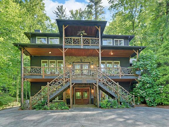 Come and enjoy this wonderful Lake Rabun home where great memories are sure to be made! The home has all of the features you need for full or part time living. The 3 level home is thoughtfully laid out with 2 living areas, open dining and kitchen, lots of outdoor living space, and well appointed sleeping areas. The first level has 2 bedrooms, one bath, and one living area with tile floors perfect when coming in from the lake. The mid level has living room, dining, and kitchen. This level has a grilling deck off the back and a screen porch off the dining area for a wonderful dining experience. The upper floor has 2 spacious and well appointed suites with porches off of each. Just across a noisy little creek on the large 3+ acre lot is an outdoor cooking pavilion for the grill masters. The 2 stall boathouse is a short walk across the road and has recent updates to accommodate a larger ski boat. The upper level of the boathouse offers lots of space for hanging out and enjoying the lake. The property is in great condition and ready to enjoy!