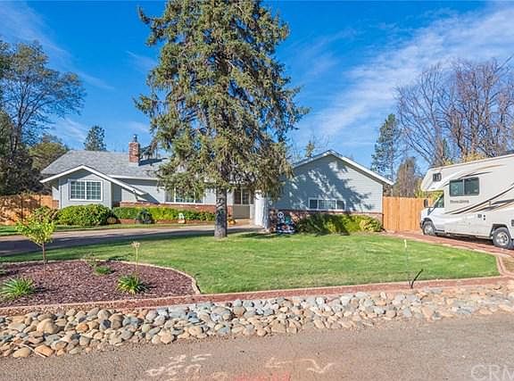 LOCATED IN CENTRAL PARADISE IN A WONDERFUL NEIGHBORHOOD. THIS 1371 SQAURE FT 3 BEDROOM 2 BATH HOME OFFERS A WARM WELCOME FEELING. THIS WELL MAINTAINED HOME OFFERS 5" BASEBOARDS THROUGHOUT, HARDWOOD OAK FLOORS, NEWER VINYL FLOORING. THE WOOD STOVE IS ADORNED BY A TRADITIONAL BRICK SURROUND AND WILL OFFER HEAT THROUGH THE COLD MONTHS.THE KITCHEN OFFERS SOLID SURFACE COUNTERS AND LOTS OF STORAGE, STAINLESS UNDER MOUNT SINK, STAINLESS STEEL FIXTURES, BRUSHED STAINLESS APPLIANCES, NATURAL GAS OVEN/RANGE, AND DISHWASHER. A WATER PURIFIER IS LOCATED UNDER THE SINK. THE LAUNDRY ROOM IS JUST PAST THE KITCHEN SEPERATED BY A POCKET DOOR. JUST OFF THE DINING AREA IS A SLIDER TO A 19X18 SHADED CONCRETE PATIO, FENCED, LANDSCAPED BACKYARD, DRIP SYSTEM, LAWN AREA AND SEVERAL FRUIT TREES INCLUDING APPLE, AND CHERRY. A ROSEGARDEN IN THE CORNER AND A LARGE SHED FOR ALL YOUR TOOLS.THE GUEST BEEDROOMS ARE SPACIOUS AND GUEST BATH OFFERS COUNTER TOP VANIITY & TUB/SHOWER COMBINATION. THE MASTER BEDROOM AND REMODELED MASTER BATH OFFER SOLID COUNTER VANITY AND A LARGE STEP IN SHOWER.THE TWO CAR GARAGE OFFERS PLENTY OF STORAGE AND THERE IS ROOM FOR R.V./BOAT OR TRAILER PARKING MEASURING 11 FT WIDE AND OVER 40 FT DEEP. SEVERAL HOMES IN THIS NEIGHBORHOOD SURVIVED THE FIRE AND LOTS OF HOMES ARE REBUILDING. THIS LOCATION WAS ALWAYS A GREAT PLACE TO LIVE. THIS HOME FEATURES A 2020 ROOF, NEWER PAINT ON THE OUTISDE AND A WHOLE HOUSE GENERATOR.