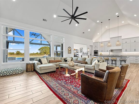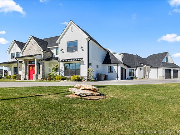 PRICE IMPROVEMENT!!!! Welcome to the pinnacle of luxury living in Owasso’s prestigious Stone Canyon neighborhood. This exquisite property boasting a total of 5 bedrooms, 4 1/2 baths and 3 car garage consists of the main house and an attached 2 bedroom, 2 full bath with 2 car garage guest home. An entertainers paradise with an open concept floor plan, vaulted ceilings, gas fireplace, a dry bar and remote control window coverings. Kitchen features an oversized island with leathered quartzite countertops, two dishwashers, 48“ range, double ovens, 40 lb ice maker, and walk-in butlers pantry with designated space for additional fridge. The living room fireplace has additional vent to the master bathroom for added comfort. Large laundry room includes cabinet with laundry chute for add convenience. The master bathroom exudes sophistication with its Japanese inspired wash room style with dual shower heads and a rainfall shower head. Home also includes a built-in safe room with ample storage space to provide extra security for your valuables, a large storm shelter and A multi-purpose room upstairs. The backyard showcases a massive back patio with vaulted ceilings, pre-wired for speaker and patio heaters, an outdoor fireplace, a heated Gunite pool and fire pit. The guesthouse offers granite counters, 48 inch range and an ice maker as well. It also has a storm shelter, along with an additional climate controlled hobby room above the garage! Home also includes spray-in foam insulation throughout and a generator servicing both the main and guest house. Upstairs Exercise Rm in the Main House & the Bonus Rm above the garage in the guest house are both not included in total sqft of the home. This property redefines opulent living in Stone Canyons gated community. Schedule your private tour today!