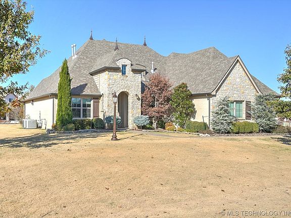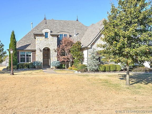 Welcome to this immaculate 4 bedroom 3 bath home in the Master Planned Community of Stone Canyon. This house sits next to a green belt making the lot feel extra spacious. It is tucked away on a side street which keeps it quiet & a safe place for children to play outside. Added bonus includes a built in basketball hoop w/ a perfect layout & Hunter Douglas window shades throughout. When entering the home you will immediately see the detailed craftmanship including 10 ft. ceilings and hand scraped hardwood floors. The master bedroom is conveniently located downstairs and offers a spa like bathroom. The 2nd bedroom downstairs could be an in-law suite. The chefs kitchen with granite countertops and stainless steel appliances is centrally located and opens up to the living room. The living room is designed for comfort and features a beautiful fire place surrounded by specially designed custom shelves. At night enjoy relaxing on the backyard patio with an illuminating view of the Tulsa Skyline. Two bedrooms with large upstairs closets with a jack and jill full bathroom. You will also find a large game room upstairs that perfect for movie night or family get togethers. Stone Canyon has several trails throughout the neighborhood making it a fantastic place enjoying long walks in the fresh air. Other amenities Stone Canyon offers includes Stone Canyon Lake where you can fish, enjoy a sandy beach, or have a picnic in the park. Welcome Home!! Transfer to Owasso Public Schools may be possible!