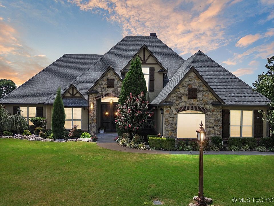 Welcome to luxury living in one of Owasso's most prestigious neighborhoods. Situated on nearly an acre, this stunning 4-bedroom, 3.5-bath residence offers elegance, space, and modern amenities for both everyday living and upscale entertaining. Step inside to find a thoughtfully designed floor plan featuring a dedicated home office, formal dining room, and a spacious living area that seamlessly connects to a chef's kitchen complete with a built-in refrigerator and high-end finishes throughout. The second level features one bedroom, a bathroom, game room area, and a projector and screen perfect for a family movie night or celebration with friends. The real showstopper is outside. It features an expansive outdoor entertaining space including a built in grill and firepit, perfect for warm summer evenings under the stars. Whether you're hosting a gathering or enjoying a quiet night in, this backyard is made for memories. Enjoy the best of community living with access to scenic walking trails, a resort-style pool, and a private fishing pond just steps away. This is more than a home, it's a lifestyle. Welcome to refined living in Owasso's premier, Stone Canyon.