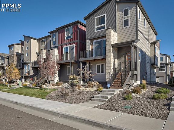 Welcome home to this 1 year old, 3-story urban style home located in the highly desirable Wolf Ranch neighborhood. Part of the Midtown Collection built by Classic Homes, this 3 bedroom, 2.5 bath home features an attached 2 car garage off the lower level entry which has a flex room perfect for a home office, home schooling, craft or workout room..whatever you want it to be! The second level has a large eat in kitchen which features stainless steel appliances including gas range and fridge, white granite counters, large island and pantry/storage. You can walk out onto the balcony from the dining area and have a beautiful view of the mountains. Upper level master bedroom has view of the mountains and 4 piece bath with double vanity, large shower with seat, frameless shower glass, and large walk in closet. Upper level also includes 2 additional bedrooms, full bath, and laundry space. Environmentally friendly ION Solar system (Leased) is just one more great attribute this home offers. This home is a quick walk to the mailboxes, dog park and pool. Schedule your tour today!