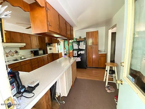 Enjoy 500 feet of frontage on White Road and 470 feet of frontage on Hilton Park Road, this corner lot is sure to attract your attention! Stand on the hill in this 5 plus acre wooded parcel with a view of a small nearby fishing lake. This nearly century old farmhouse is sure to charm with loads of potential! Newer updates include a 2017 roof, 2018 hot water heater, 2005 furnace and more! Watch the wildlife through the slider of the off kitchen breakfast nook. You will find the separate entry to the large laundry room with sink convenient. Conviently located less than 1 mile to Wolf Lake recreational fun and grocery store. This home offers any handyman great opportunities to create your own updates and personal touches