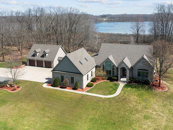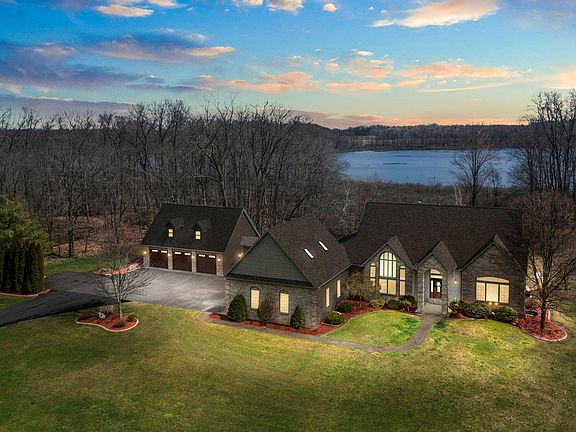 THIS HIDDEN GEM SITS ON OVER 10+ ACRES WITH 1,000 FEET OF WATERFRONT ON SPATTERDOCK LAKE. THE HOME FEATURE 8 BEDROOMS, 4.5 BATHS PLUS 2-3 CAR GARAGES, ONE ATTACHED, THE OTHER SEPARATE. The GOURMET KITCHEN has 2 granite counters, island seating, cherry wood cabinets, tile floors and backsplashes, 18' VAULTED CEILING, walk-in pantry and is open to the dining area with lake views. The MAGNIFICENT LIVING ROOM offers a vaulted ceiling, stone fireplace and floor to ceiling arched windows. The main floor includes an office with built-in cherry cabinets, 2 bedrooms with sinks and a LARGE PRIMARY, with walk-in closet, fireplace, large bathroom with another closet, jacuzzi tub and separate tile shower. THE UPPER LEVEL has 3 bedrooms with sinks and vanity, ceiling fans and walk-in closets plus a full bath. There is also a bonus room that could be another bedroom or playroom. THE SPECTACULAR LOWER LEVEL has a FULL COMPLETE KITCHEN with 10 person seating at the slate counter, a FAMILY AREA, GAME ROOM, a dual sided fireplace, a walk-out patio area to the lake, plus an exercise room two more bedrooms and a bathroom.
