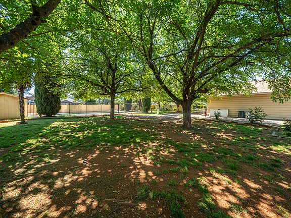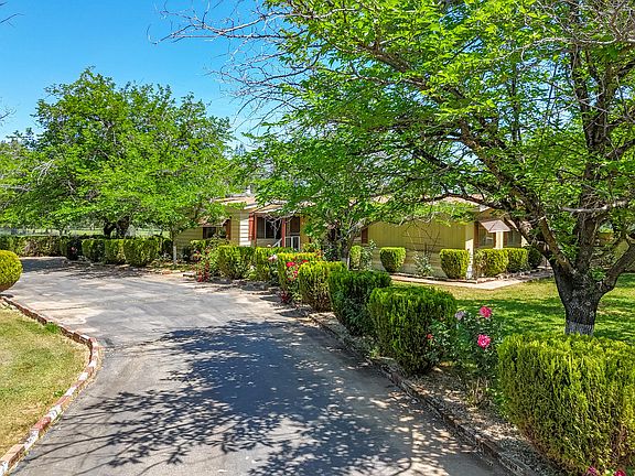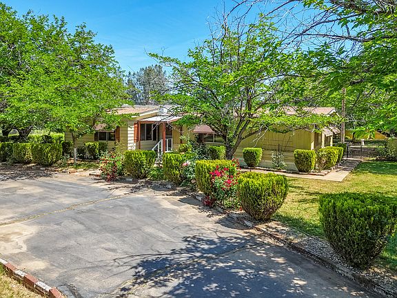 Enjoy the Roses as you tour this lovely 2.45 acres of greenery. Mobile home is on a perm foundation nestled among the large trees and fenced pool area. Home has a living room plus family room with real fireplace. Large kitchen and oversized laundry room...just a short walk to the detached 2 car garage. Plenty of room for all the toys and animals. A few fruit trees are scattered about. You will fall in love with the yard.