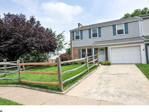 Extremely well maintained end unit at the end of the cul-de-sac with a beautifully landscaped private fenced in back yard. You will be impressed from the time you walk through the front door with the solid wood flooring & wood blinds throughout the first floor. Most rooms have just been freshly painted. Six panel colonial doors & ceiling fans throughout. Updated kitchen with granite counters, newer appliances and a deep SS D sink. The family room has a large 9' x 4' closet and 2 way shades. Just off the laundry room you will find a bonus room that can be a multi-purpose area, office, playroom, exercise room, with a large pantry closet and storage area under the stairs. (Can also be easily converted back to full garage). The second floor boasts 3 generously sized bedrooms with an updated bath. Spacious master bedroom with a sitting area and vanity area, his and hers closets; hers is a spacious walk in closet. Ceiling fans in all 3 bedrooms. Plenty of storage with the large closets, storage area in the multi-purpose room, and the full floored attic. Every room is cable ready. Brand new roof June 2015. You will not be disappointed.